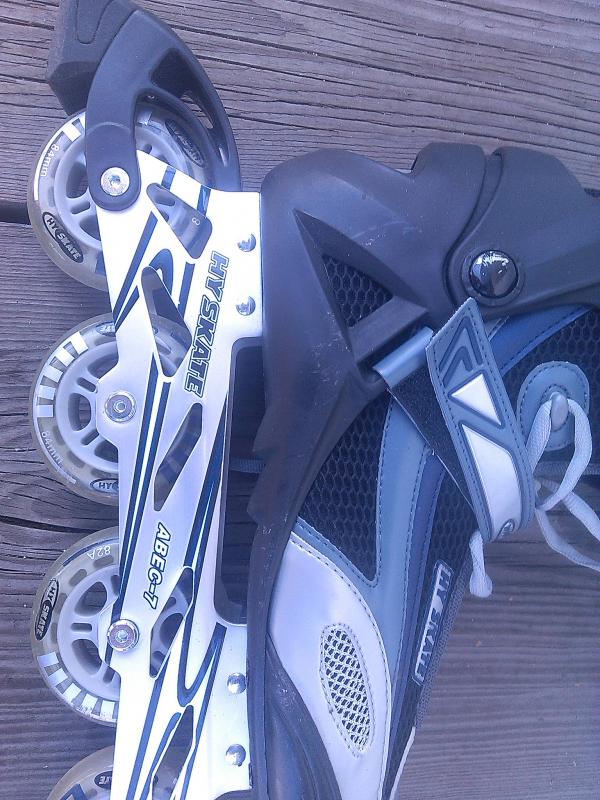 brusle jsou jako nové na noze jednou , velikost 44, Kolečka 84mm / 82A, Abec 7, pošta 120,-