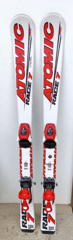Dětské lyže Atomic v dobrém stavu, délka 110 cm, , povrch hadí kůže, vázání Atomic. Doprava 220.-