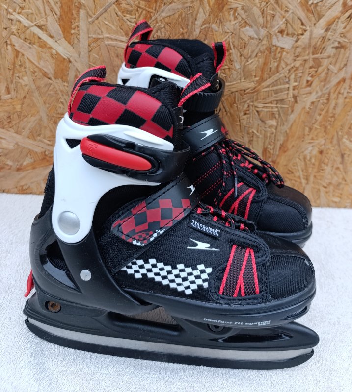 Dětské lední brusle, dobrý stav, velikost nastavitelná na nohu 29-32 , suchý zip, ráčnová přeska, tkaničky, zásilkovna 89,-