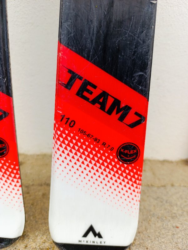 carvingové lyže MCKINLEY TEAM 7 110cm v dobrém stavu, vázání Tecno pro posuvné. Radius 7 m. Doprava 220,-