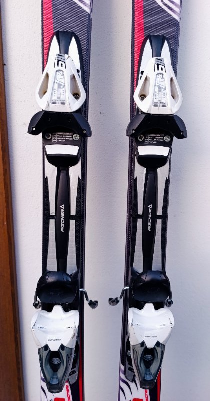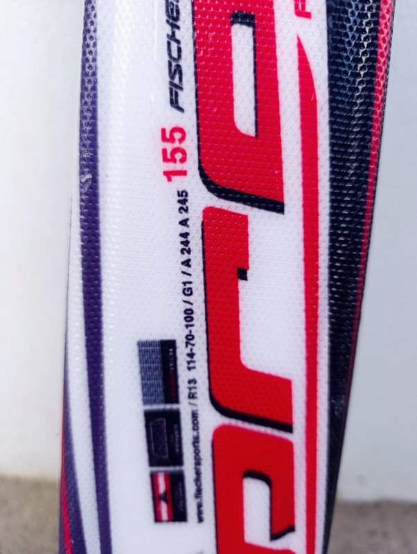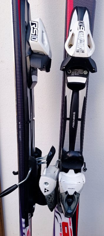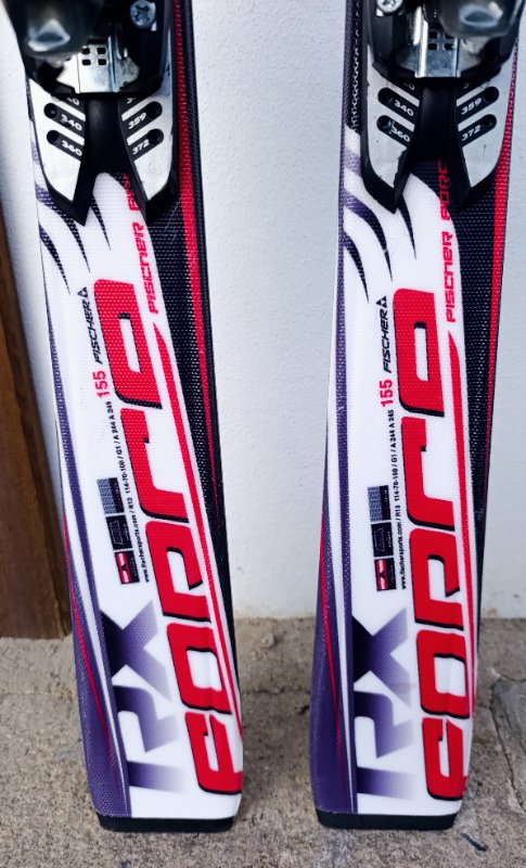 Velmi pěkné lyže Fischer délka 155 cm, strukturovaný povrch, vázání Fischer FS10 posuvné, Radius 13 m. Doprava 249,-