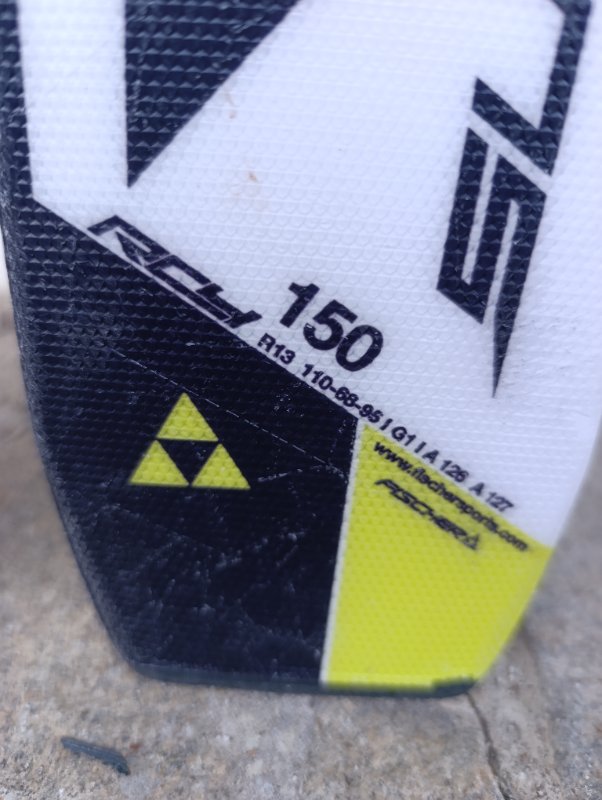 pěkné lyže Fischer délka 150 cm, strukturovaný povrch, vázání Fischer posuvné, din 2,5 - 9. Radius 13 m. Doprava 249,-