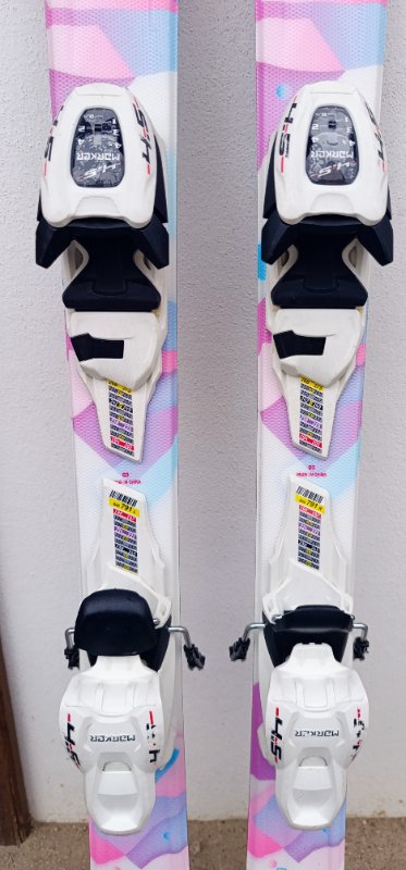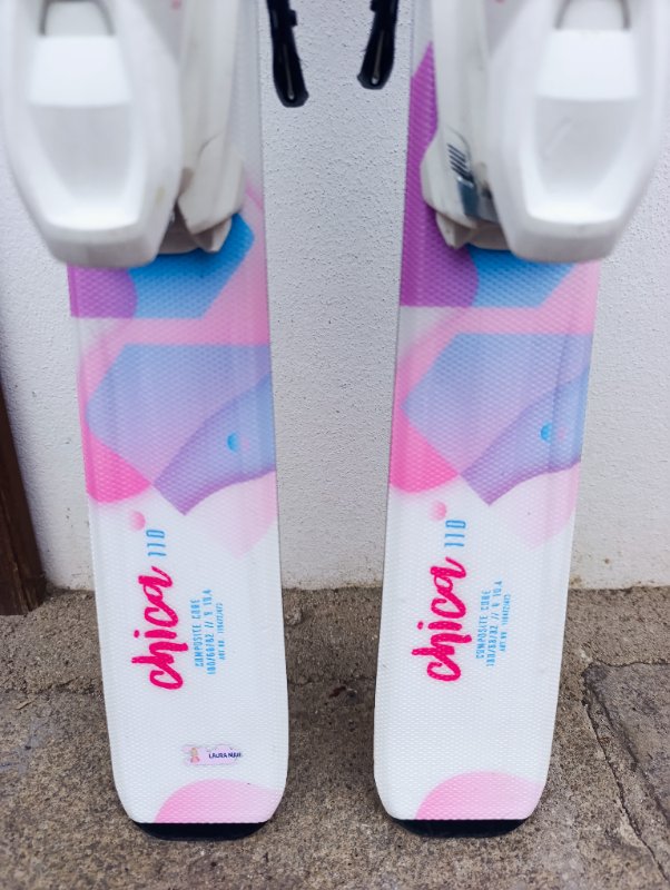 Dívčí lyže VOLKL CHICA 110cm ve velmi dobrém stavu, nesou známky běžného opotřebení, bez velkých vad. jen drobné oděrky od používání. viz foto. Vázání Marker 4.5 s podložkou a posuvnou špičkou a patou. Vypínací síla DIN 0,75-4,5 . Parametry: 82/68/100; R 10,4m. strukturovaný povrch. Doprava 220,-