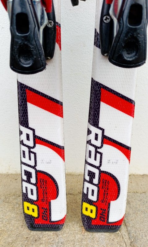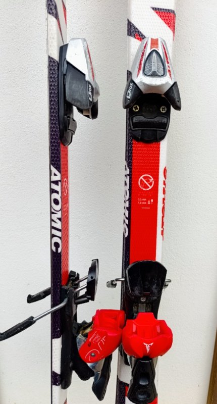 carvingové lyže v dobrém stavu, délka 140 cm, s vázáním Atomic, povrch hadí kůže. radius 13 m, lyže nesou známky běžného opotřebení, celkově pěkné. Doprava 240,-