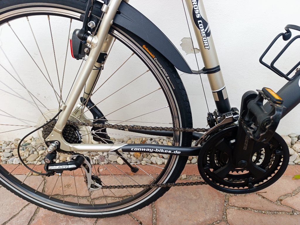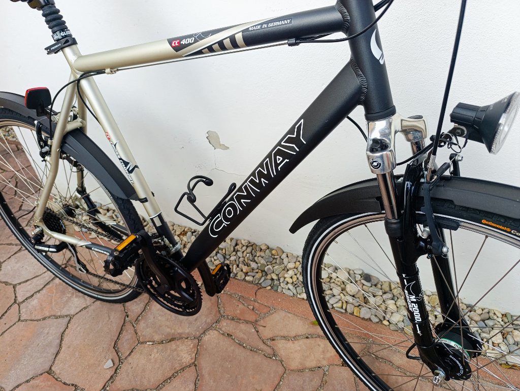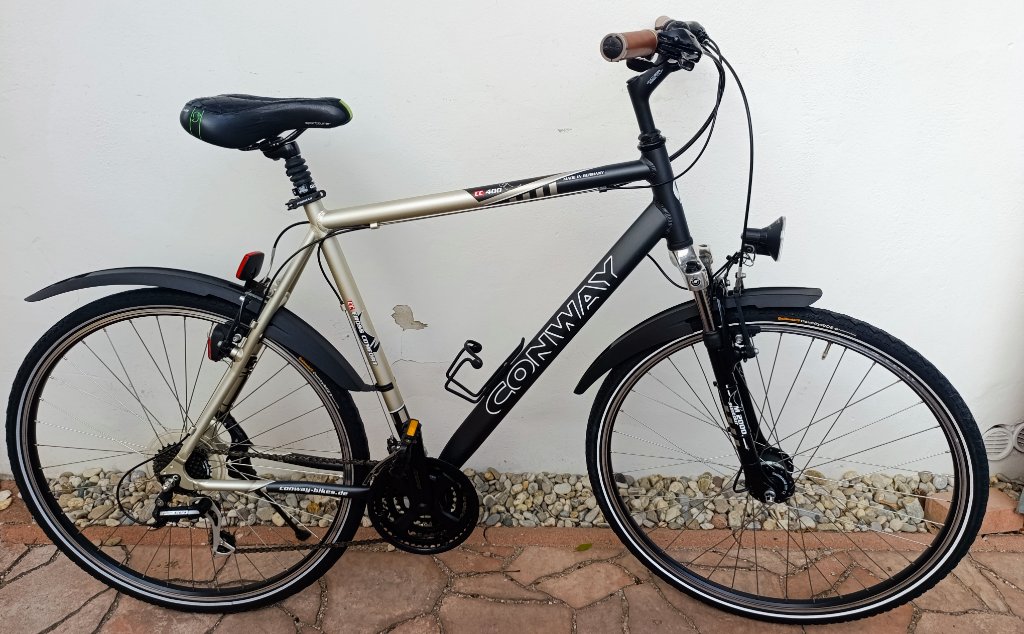 kolo velmi dobrý stav - velikost je na výšku od 190 cm a více - ALu rám 60 cm - 23 ", přední odpružená vidlice, převody Shimano 3x7. pláště 28 x 1,6, zesílené ráfky, osvětlení - dynamo ve středu kola, stojan, držák lahve, odpružená sedlovka. Doprava 340,-